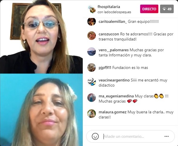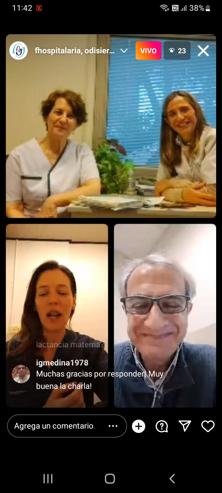 Periódicamente, se organizan charlas, a través de nuestras redes sociales, dirigidas a los padres de nuestros pacientes pediátricos, a nuestras pacientes obstétricas, a la mujer adulta atendida en nuestro CMF (Centro de la Mujer y la Familia) y a toda la comunidad, sobre diversas temáticas de interés vinculadas al campo de la salud. En las mismas, los participantes obtienen valiosa información y al mismo tiempo pueden efectuar las consultas que deseen a los profesionales.