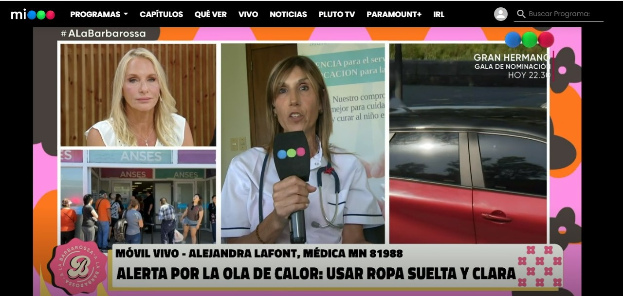 Ante las altas temperaturas que se están registrando en nuestro país, la Dra. Alejandra Lafont, Jefa del servicio de Pediatría, ha sido entrevistada ayer, en vivo, en el programa conducido por Georgina Barbarossa en Telefé.