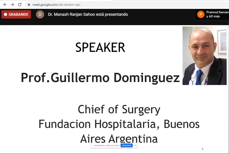 El pasado 20 de octubre, el Dr. Guillermo Dominguez, Jefe de Cirugía de Adultos, participó en calidad de conferencista en un destacado evento virtual organizado por la Academia de Medicina de la India.