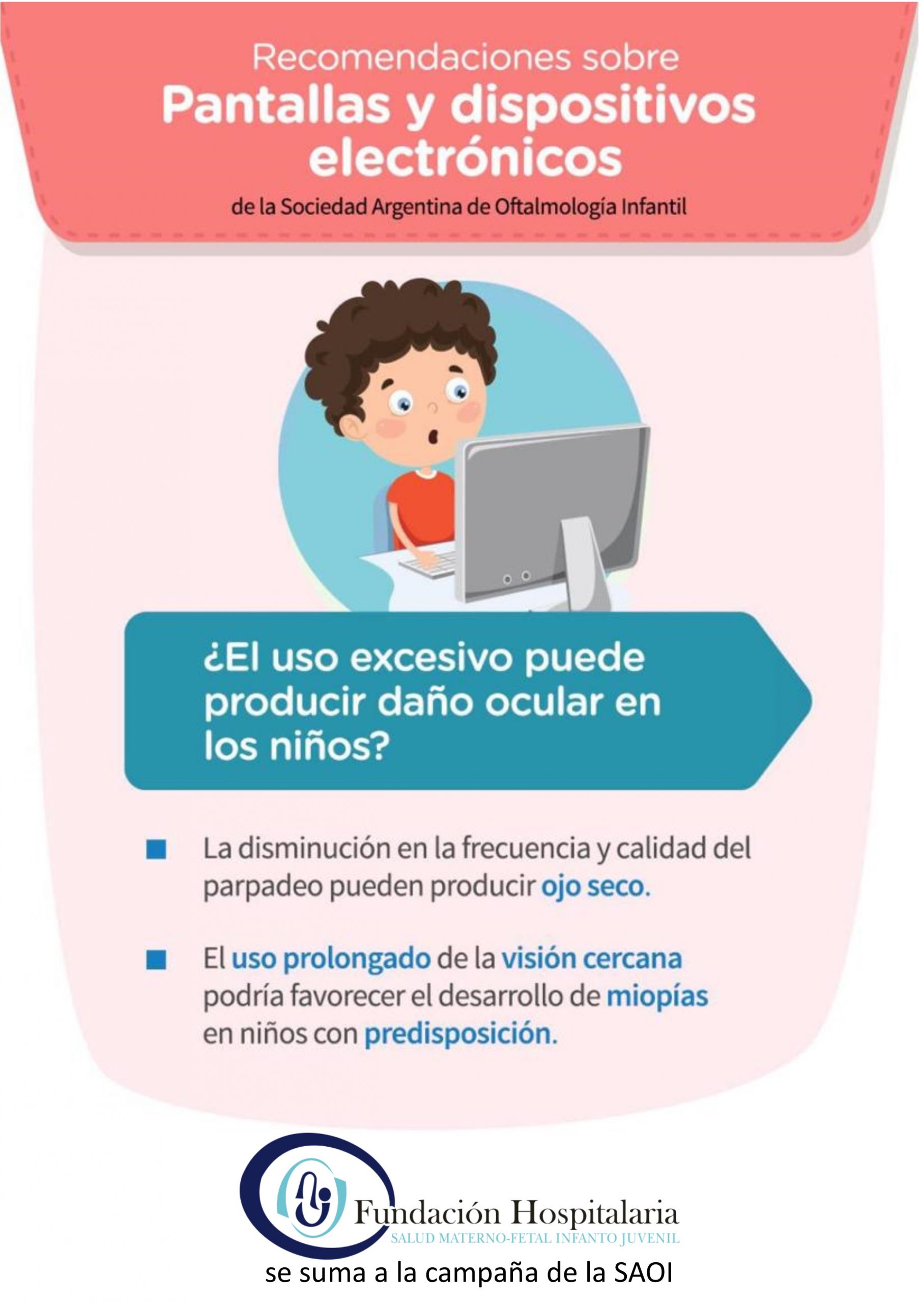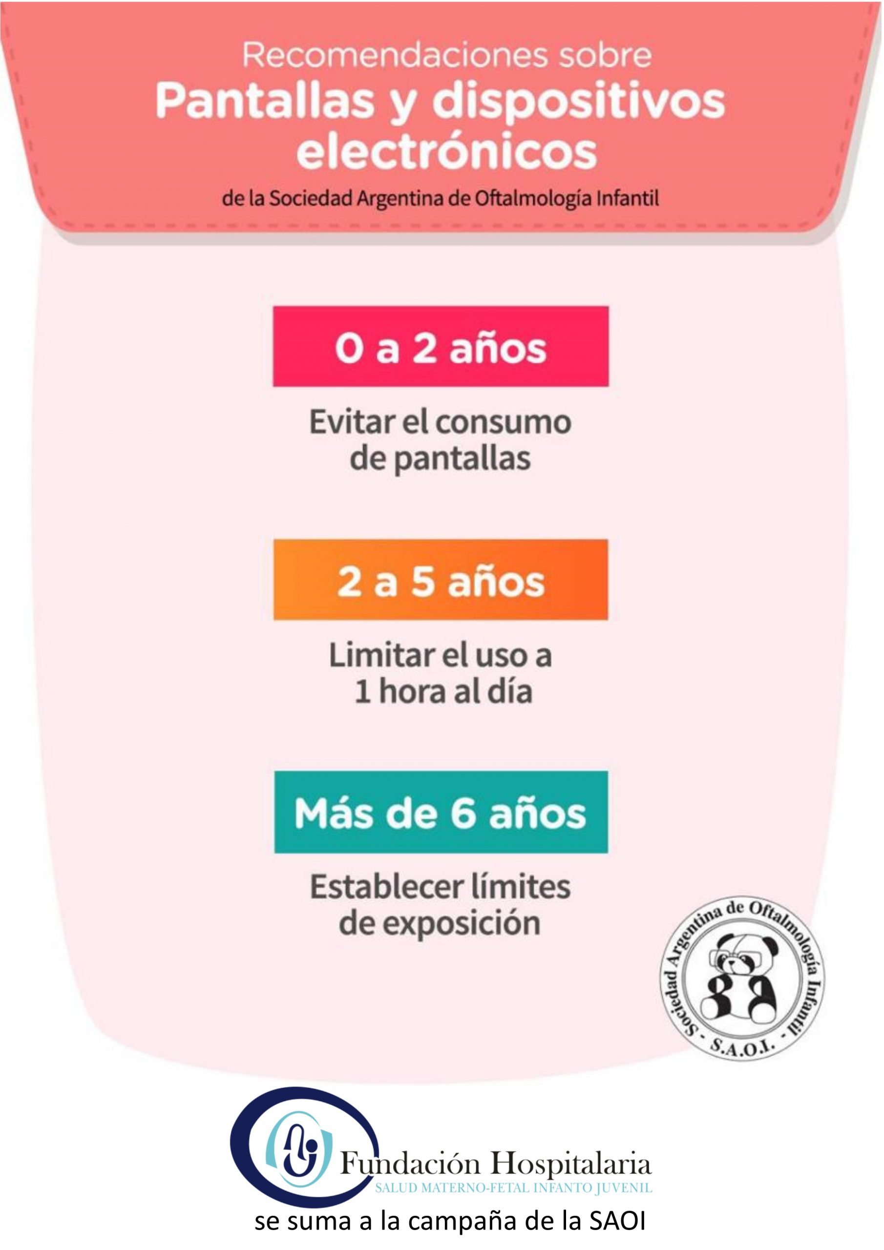 En primer lugar, tal como lo aconseja la SAOI, se debe evitar el consumo de pantallas en menores de 2 años. Entre los 2 y los 5 se recomienda limitar el uso a 1 hora por día; Y de 6 años en adelante hay que establecer límites de exposición.
